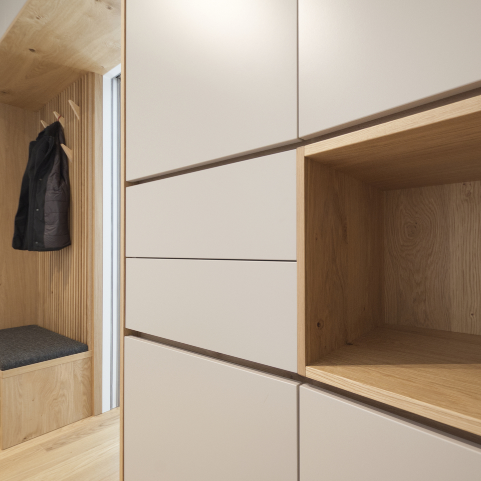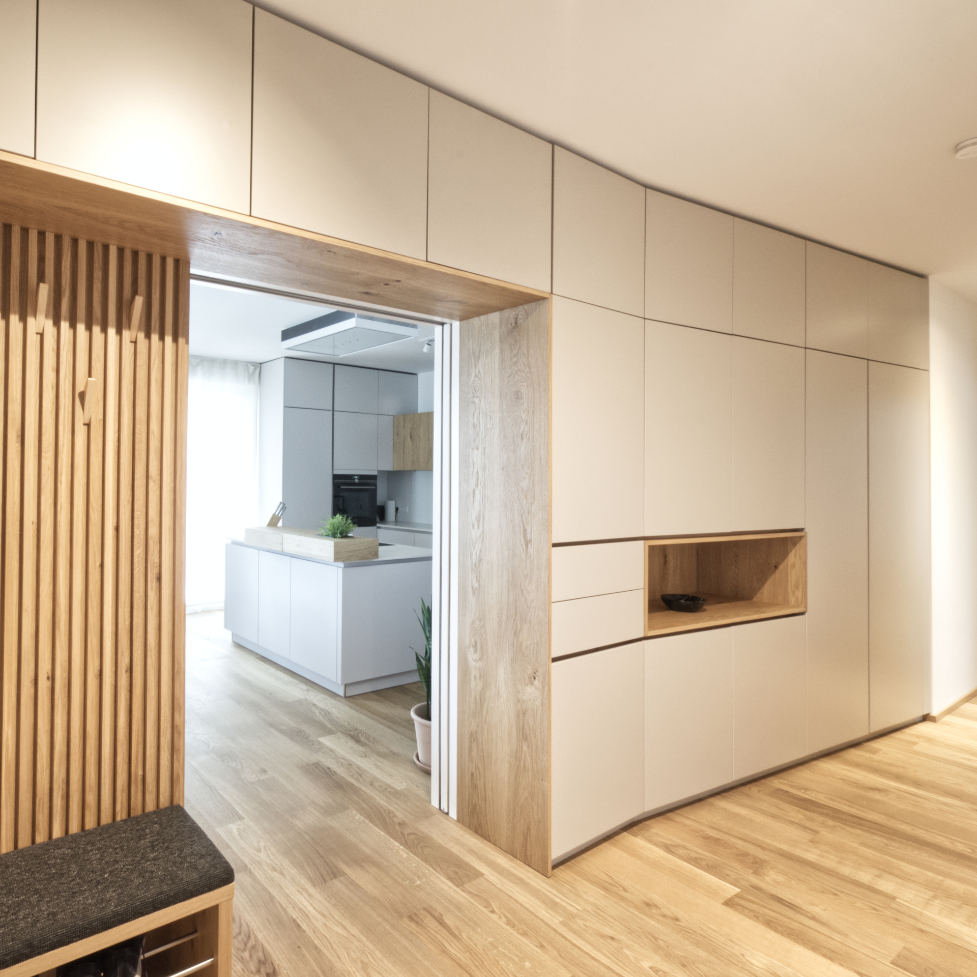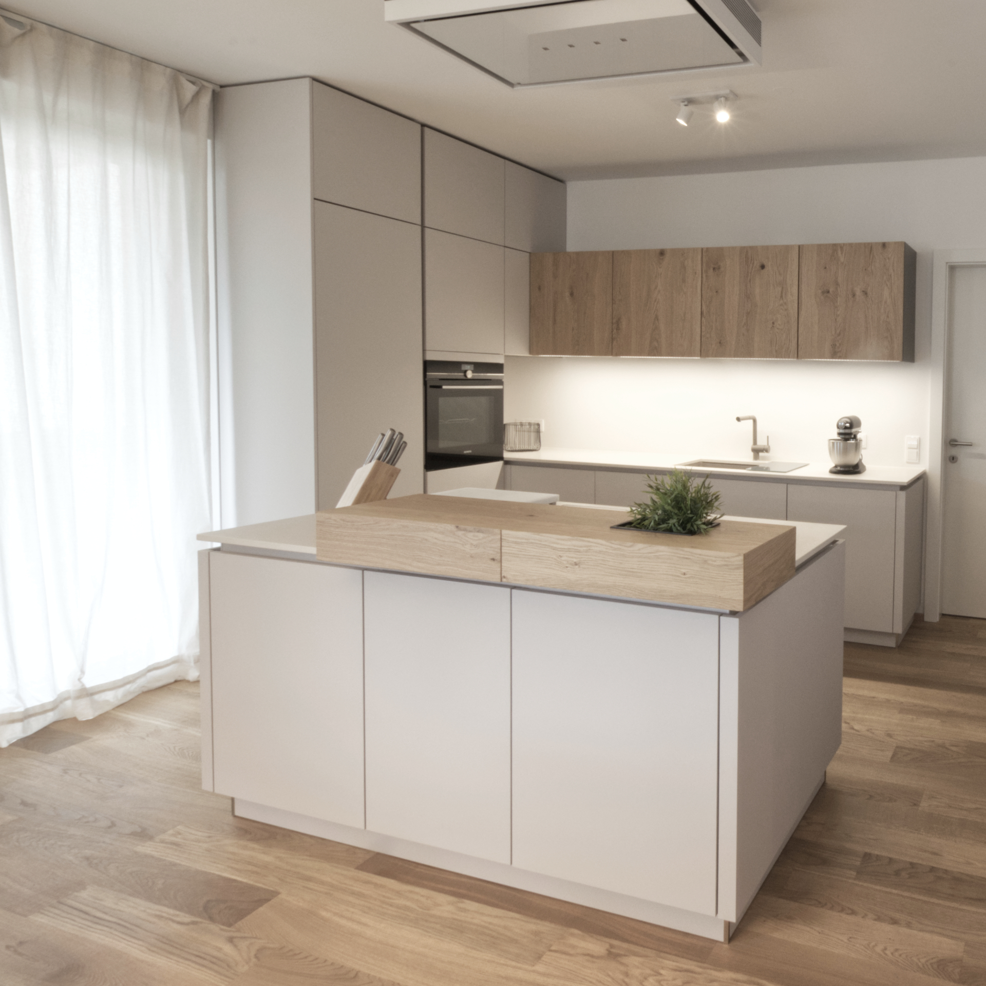 Einrichtungsplanung einer Privatwohnung in Zell am See. Entscheidungsfindung durch Moodboard und Materialkonzept. Detaillierte Möbel-, Bad- und Küchenplanung für die ausführenden Gewerke.